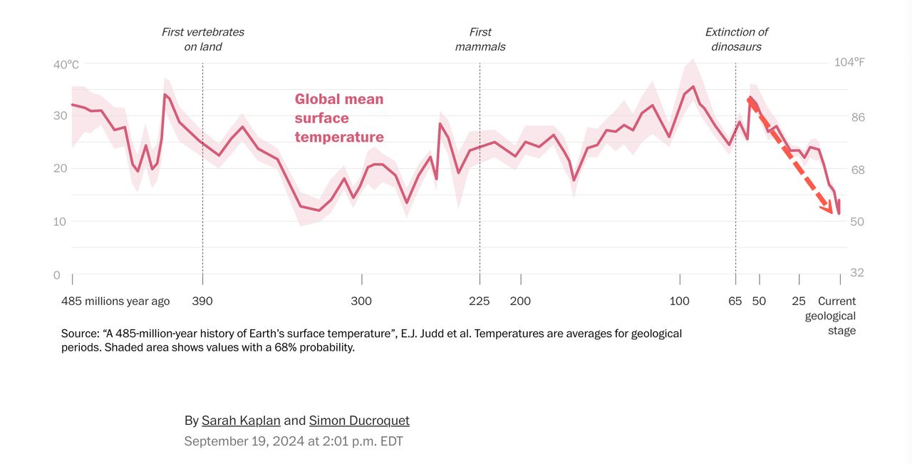 Auch die Washington Post hat versehentlich Daten veröffentlicht, die das „beispiellos“ stark relativieren: die letzten Million Jahre waren im Durchschnitt die kältesten der jüngeren Erdgeschichte.